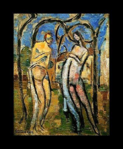 Fransa, Lille doğumlu Emile Bernard Sembolist bir ressamdı. Bernard Gauguin ve Van Gogh gibi ressamlara büyük ilham oldu ve Kloisonizm (Cloisonnism) ve Sentetizm (Synthetism) akımlarına da zemin hazırladı. Bernard’ın erken dönem eserlerinin bazıları sonradan Gauguin’in Tahitili kadınları tasvir ederken geliştirdiği tarza çok benzer; aşağıda görülen “Saman Yığınları Yanındaki Kadın, Brittany” adlı Bernard eseri buna örnektir.