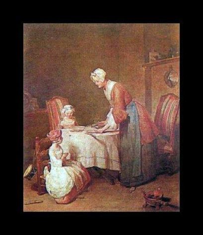 1728’de Chardin, Kraliyet Resim ve Heykel Okulu’na alındı ve bu noktadan itibaren burjuvazi Parislilerin hayatını resmetti. Hatta ilk müşterilerinden biri de Kral XV. Louis’di. Chardin o zamanlar çok rağbet görüyordu çünkü tuval üzerinde yalnız fırça darbeleri ve vernikle oldukça gerçekçi dokular elde edebiliyordu. Bu büyük yeteneğinden ötürü eleştirmenler ve müşterileri ona “Ulu Sihirbaz” adını verdiler.