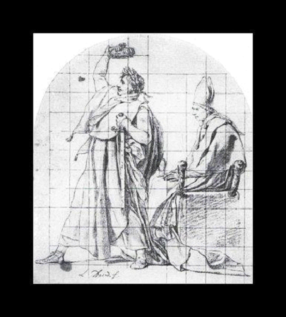Hapisteyken David, Napolyon’un ilgisini çekti ve sonradan onunla da arkadaş olup eskizlerini çizdi. Napolyon ve David gerçekten de birbirlerine hayranlardı; David aynı zamanda Napolyon’u at üzerinde savaşa giderken resmeden Napolyon’un en ünlü portrelerinden birini resmetti.